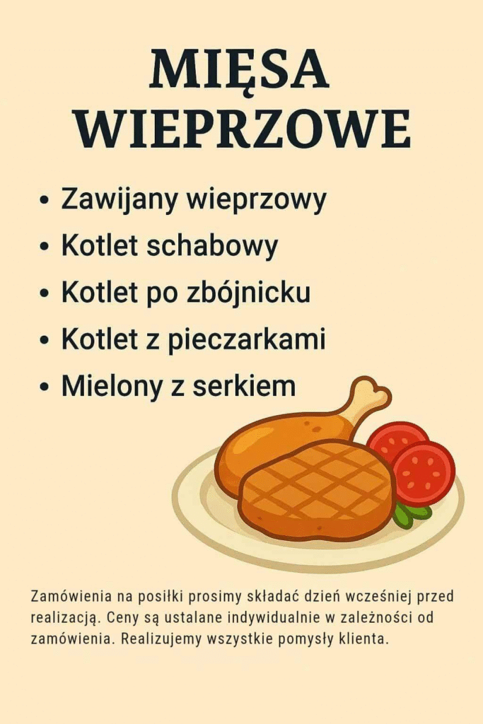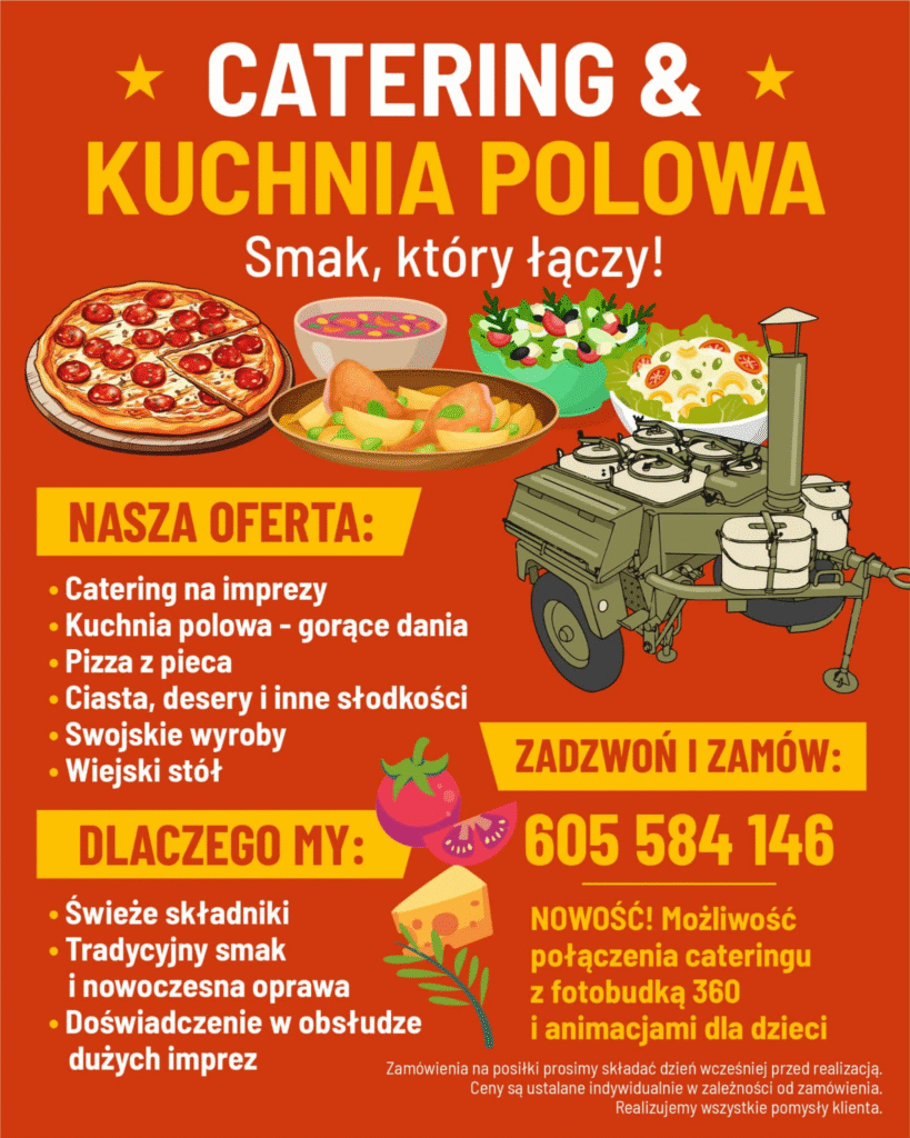 Gotujemy z sercem, jak w domu – świeżo, swojsko i zawsze na czas. Obsługujemy wesela, imprezy firmowe, komunie, festyny i eventy plenerowe. Nasz catering to połączenie tradycyjnych smaków z profesjonalną obsługą.